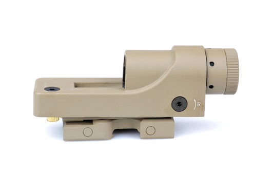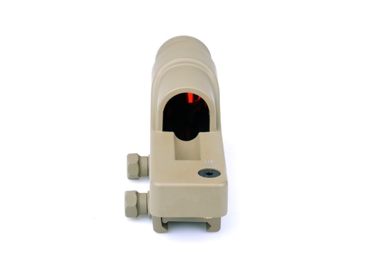 A red dot sight replica of aiming device used with real firearms. It is an open red dot sight replica, it projects red aiming point in shape of small circle. Its greatest feature is that it doesn&#39t require any battery to functioning – it employs light fiber technology! The fiber is located on the front side of casing. Aperture is 25mm wide.