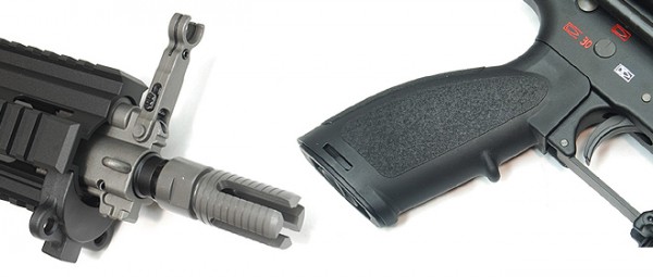 3-Position Sliding collapsible rear stock with a shortened buffer tube.