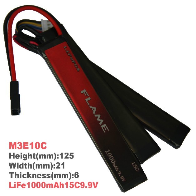 LiFePo4 High Drain Battery, 9.9V 2000mAh, 20C max Discharge, Dimension: 3x13mm*20mm*125mm, Weight approx. 170g