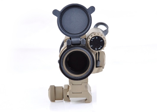 Windage and elevation adjustable dot reticule with 5 levels of brightness.