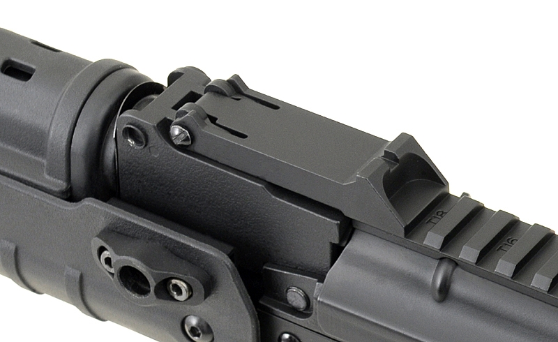 CYMA CM.077A Antonov-T AK-47 Sliding Stock, is a 6mm BB Airsoft Electric Gun, based on the AK-47, and given a comprehensive overhaul, creating an Operator Platform that is an incredibly Dynamic platform. CYMA have taken the traditional AK-47 platform, and removed the shortcomings of the traditional design, replacing the Stock, Handguard and Pistol Grip with Ergonomically Enhanced Designs. Featuring the Modular Polymer furniture kit, the CM.077A uses a Lightweight Polymer Sliding and Side Folding Stock, resulting in an situation Adaptable gun. The Stock features a Sliding Buttstock, allowing users to Extend or Collapse the length of the Stock, resulting in an AK platform with unsurpassed user ergonomics. The Buttpad is a Rubberised, Shock Absorbing design, which allows for greater Control over the weapon and a stable shoulder-grip. Finally, the Stock can be Folded to the Right, allowing for a short-length Assault Rifle in CQB, and easing both Transportation and Storage of the gun. By folding to the right, this stock can be used with AK Side Mounted Scope Mounts, unlike the traditional AK folding stock design. This has been paired with the Polymer Handguard, which replaces the AK-47s traditional handguard with a Lightweight, Comfortable MLOK compatible design. With MLOK attachment points on the Sides and Bottom of the Handguard, users can install a wide variety of Accessories and After Market Components to enhanced the practicality of their gun; from Foregrips to enhance their Control of the gun, to Lasers and Lights for use in Low Light Situations. The Top Cover has not escaped CYMAs upgrades, as it is now Hinged, improving users access to the battery compartment and making closing the Cover easier. The Top Cover also features a 16.7cm length 20mm RIS Rail for mounting a wide variety of Magnified or Reflex Optics, improving the users ability to Locate and Track targets while Airsofting. The Controls remain the same Tried and Tested AK design, the Fire Selector is th