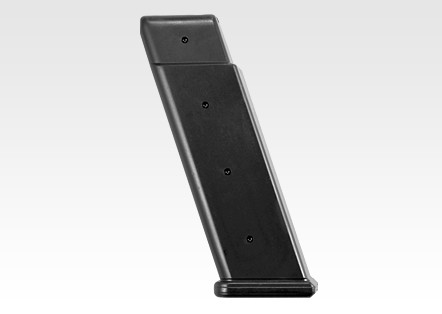 This airsoft pistol by Tokyo Marui is an excellent rendition of an IAI Automag, which is a large single action semi automatic weapon in stainless steel. The real Automag III fires the .30 carbine round, a cartridge originally designed to be used in light rifles and the M-1 carbine.