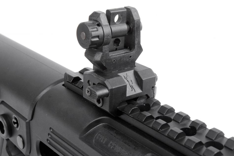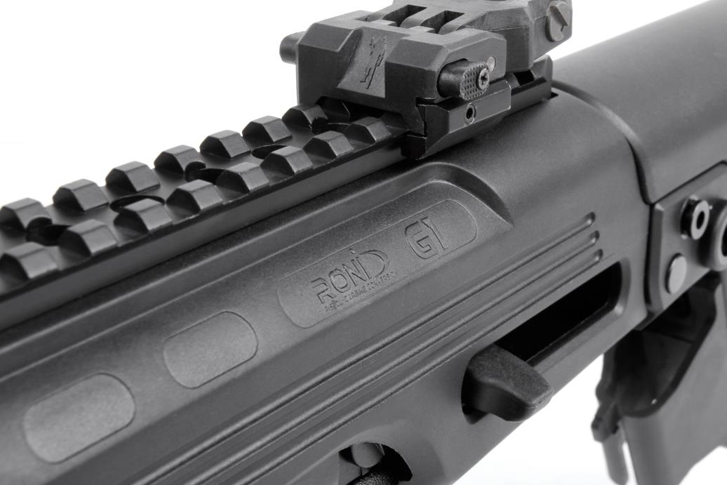 The Airsoft RONI G1 Pistol-Carbine Conversion is ergonomic designed and equipped with ambidextrous front and rear sling mounts, and large charging handle. Charging the weapon is easy and it is user friendly to both left and right handed operators. It is integrated with a CNC machined Aluminum top and 2 side rails for mounting accessories, and a Nylon Fiber lower rail to mount any forearm grip. The RONI is equipped with an adjustable 5 position buttstock, and features a spare magazine holder for faster reloading. The adjustable cheek rest on the buttstock is removable. The RONI Pistol Carbine Conversion includes a pair of flip-up sights, a detachable folding forearm grip and a charging handle.