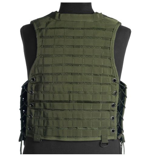 This lightweight yet durable tactical MOLLE vest features heavy duty nylon webbing