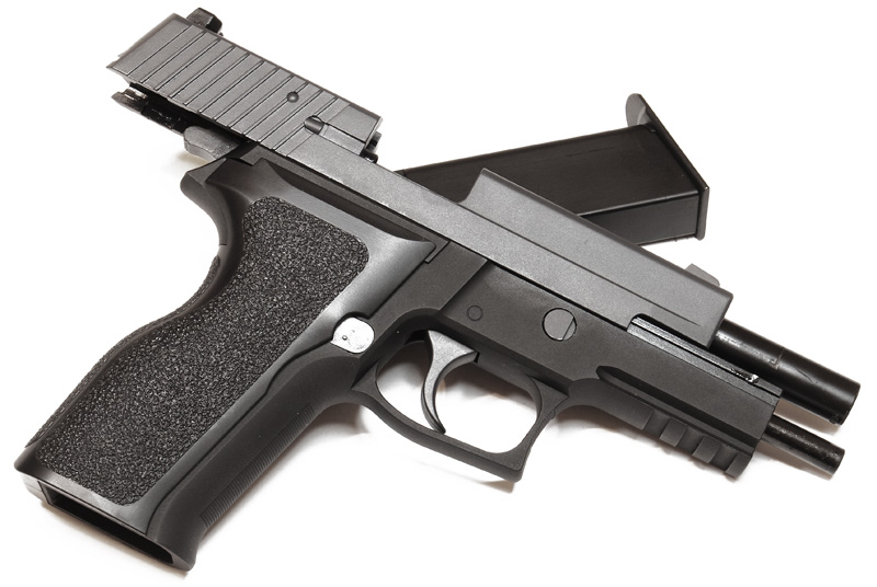 “P226 is the sidearm of U.S. Navy Seals Special Force. When it comes down to accuracy, dependability, ease of use, safety & longevity, P226 is on top of the list. Its exceptional ergonomics and balance make this high capacity full-size pistol easy to fire. Military & Law Enforcement Agencies around the world. A little known fact is that P226 is tested far superior to the Beretta 92F in trail tests by US Military. The 92F was chosen over the P226 for cost reason (and also Beretta’s willingness to open manufacturing factory in US sole). WE is proud to present the Airsoft version of SIG SAUER P226 with the every aspect of this famous Weapon. Plus it is a FULL METAL constructed pistol.”