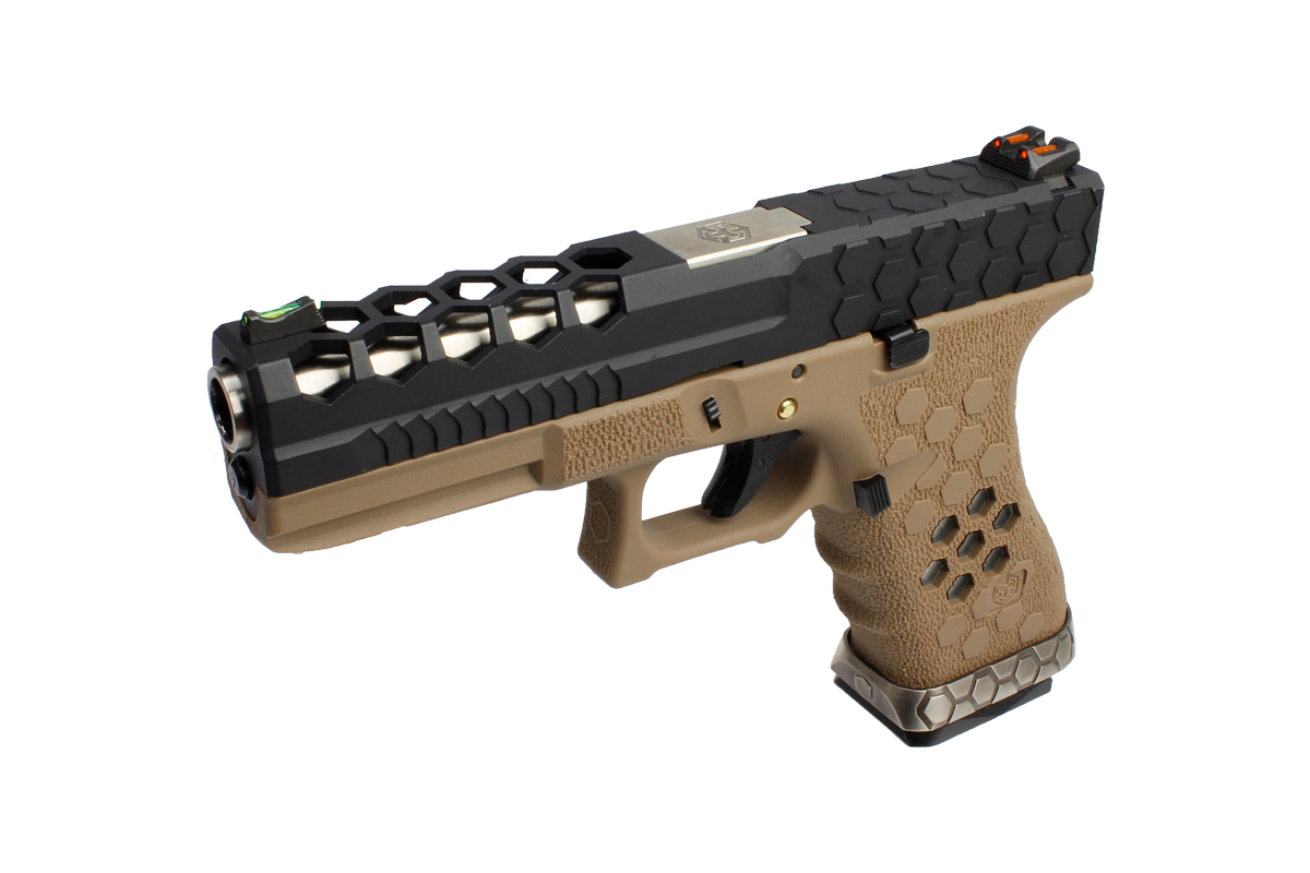 AW Custom is proud to announce the VX Series Hex Cut pistols, a brand new range of pistols featuring our signature hex cuts and hex porting to reduce overall weight of the pistol in addition to providing an aggressive gripping surface. Whether you’re putting this pistol through it’s paces at an IPSC/Action Air competition, or skirmishing it, this pistol will consistently outperform the competition, putting shots downrange accurately, and with blistering speed.