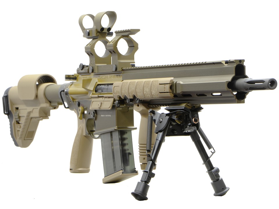 The G28 is a military version of the civilian semi automatic competition rifle MR308. Deployed in the established 7.62 x 51 calibre, the “Designated Marksman Rifle” (DMR) ensures accuracy of 1.5 MOA whilst enabling a full night fighting capability. Providing a maximum effective range and a high first round hit probability, the G28 will also allow suppressive fire against man size targets accurately.
