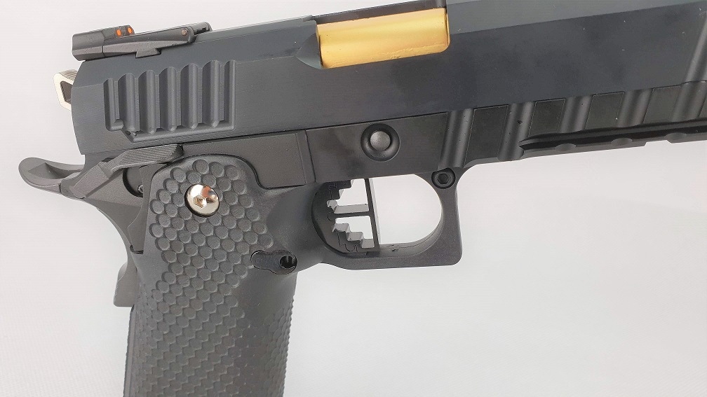 Armorer Works newest release with the best features you’ll ever look for on an pistol. It features a customized, ported, lighter, skeletonized HI-CAPA slide, hammer, and trigger. The gun also comes pre-assembled with a full metal striker head with integrated lower accessory rail for an aggressive look.