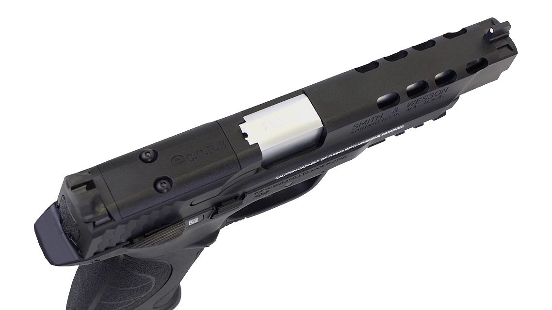 It’s been a long time coming and it is finally here. This time around, Marui have beaten everyone to the punch. Marui may be known for clocking in low right out of the box but this one pushes it to the limit clocking in at 330 fps with green / top gas. This is Tokyo Marui we are talking about and this SW P9L is a beast! What makes it so special? You look at the body and notice that it’s made out of plastic, as the real steel version is made out of polymer and it comes with the standard plastic slide. It comes with two additional grips for those with smaller or bigger hands, which is normal. What you see on this that you won’t see on the others is a visible safety lever. You can find it on the same spot as the Hi-Capa and it’s ambidextrous. This is something you won’t usually find on the real steel version though it is possible to get one. Japanese laws dictate that a safety switch needs to be visible so we can’t fault them for that and to be honest, it’s actually very useful. The slide release is ambidextrous, you can find the magazine release protruding on the left side and there is a accessory rail up front for your lasers and flashlights. To find the hop up, you’d think you would need to remove the slide, but you don’t as all you need to do is pull the slide back and in the breach, you can find the hop up spinning dial on the far side. How very useful! Let’s get down to business. How does it feel when you pull the trigger? If I tell you that it feels like a Hi-Capa, will that be enough? Probably not, but what I can say is that it has a brutal kick and has the consistency of a Hi Capa which is saying a lot.