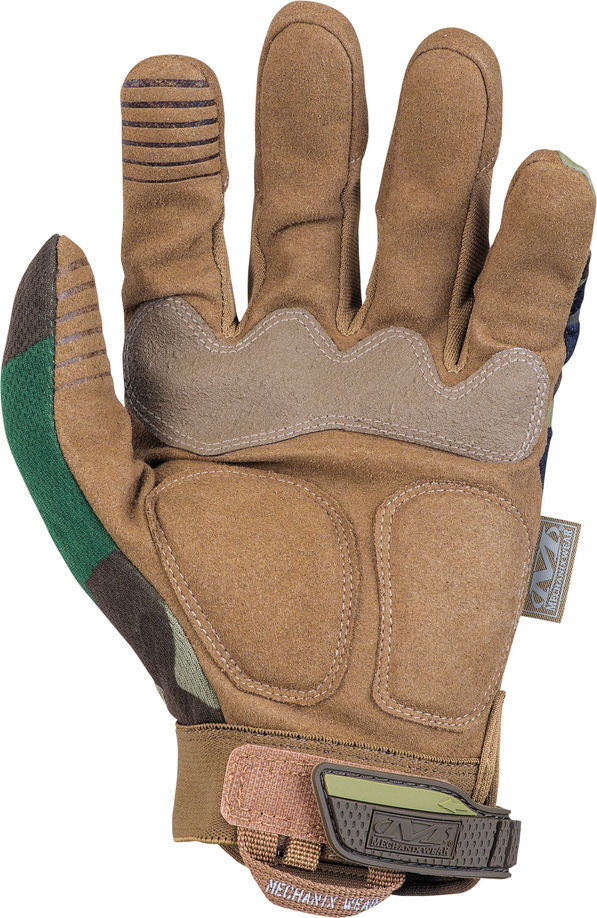 The Woodland M-Pact® tactical glove is designed to protect and conceal military and special forces in mountainous regions with varying vegetation. Impact-absorbing thermoplastic rubber (TPR) delivers flexible protection in the field against impact injuries and skin abrasions. Our patented Impact Guard™ frees the index finger for smooth trigger guard entry and mobility during hard-charging operations. The dual-layer internal fingertip construction reinforces your thumb and index finger to provide improved abrasion resistance. XRD® padding in the palm absorbs impact and vibration to reduce hand fatigue when you’re fully engaged. Imported