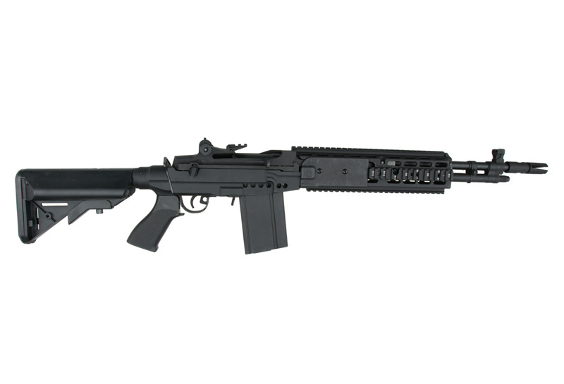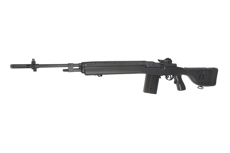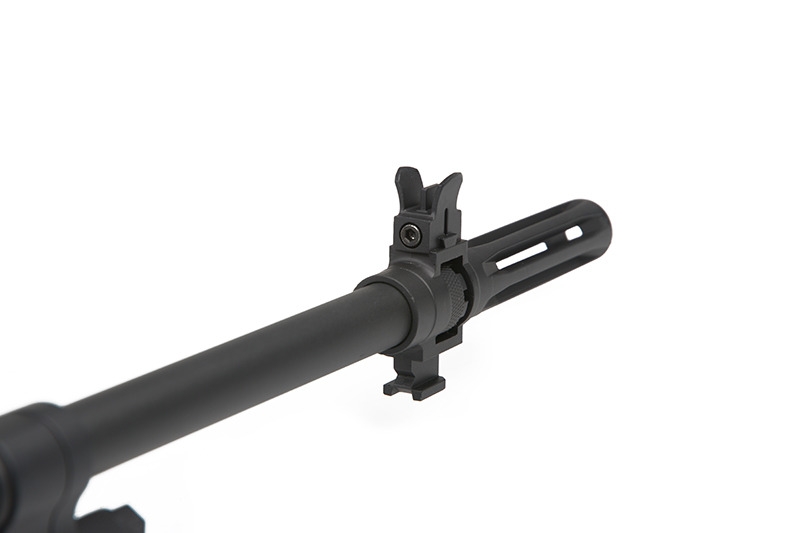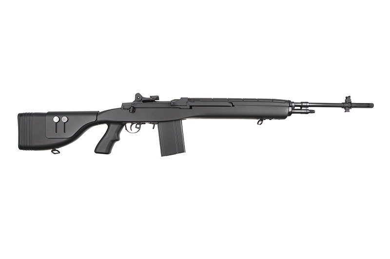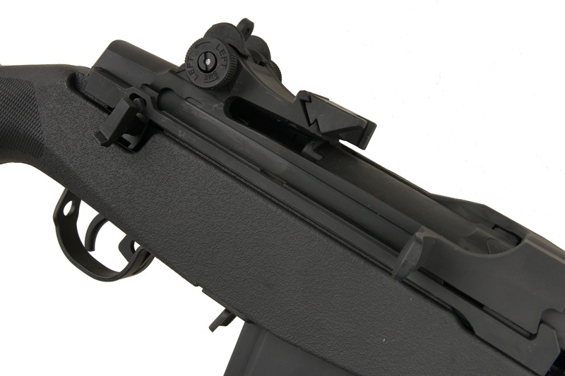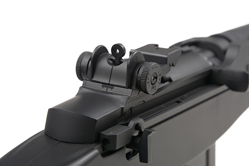 The replica has a smooth, nice to the touch cradle. Iron sights consist of an open, vivid front sight and a vertically and horizontally adjustable rear sight.CM032D replica features a metal bolt, whose reloading sound can pleasantly surprise every player. Additional advantages of this replica include an operational mechanism that locks the bolt in rear position, however, in order for the bolt to remain in the back, first it needs to be pulled back, the bolt catch needs to be pressed (the paddle is located on the left side of the replica) and only then can the bolt be released. In order to release the bolt from its rear position all that is required is to pull back the bolt without pressing the bolt catch paddle.