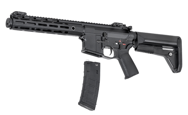 Replica of the new 097 series of assault rifles, These carabines are produced in different specification that includes civil or military. The lower receiver, the upper receiver, the stock tube, the external barrel, the fire selector, the magazine release button, the trigger, the charging handle, and the front and rear sight are made in aluminum, that made the replica is more realistic.