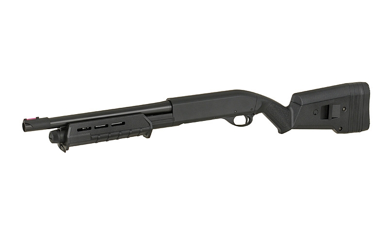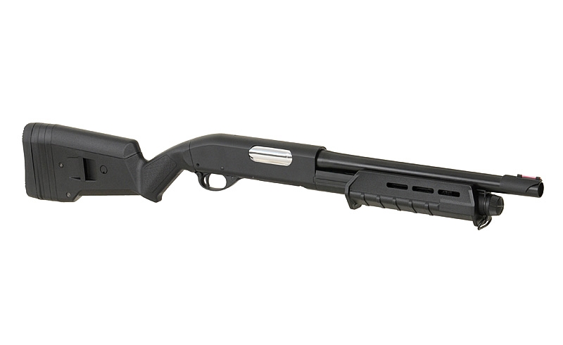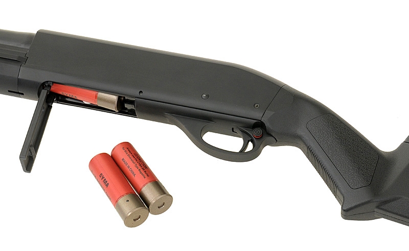 Great replica in scale 1: 1 of one of the most popular shotgun, used by civilians, police or military. The replica has been produced by CYMA specialy for the airsoft market. Just like in other replica from that producer, rifle has a reliable mechanism in this case a pump action system powered by a spring. This Shotgun is present in 2 category: low-budget with a ABS construction (stock, receiver, fore end, action bar, tubular magazine) and for the players who want realism a full metal version (receiver, cross bolt safety, trigger, trigger guard, magazine loading port, barrel, action bar, tubular magazine). The both version after the reload can shoot simultaneously 3 BBS at each shoot. In the set with replica you have a magazine type shotshell for 30BBs and a speed loader.