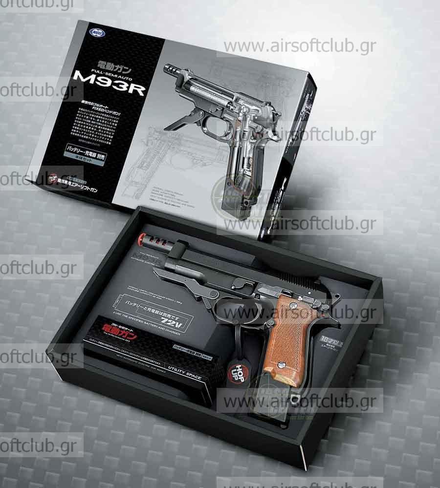 Micro Automatic Electric Gun from Tokyo Marui. The Tokyo Marui M93R AEP uses same gearbox mechanism and concept as the Tokyo Marui Glock 18C AEP. Marui M93R AEP has good muzzle velocity, rate of fire and accuracy. Plastic frame, full metal foregrip. Semi & full automatic.