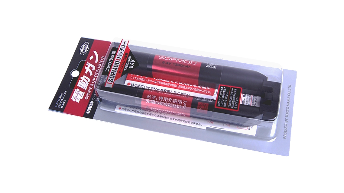 Nickel Metal Hydride rechargeable battery 8.4v 1300mah for Marui M4 SOPMOD. It can also fit in the HK416.