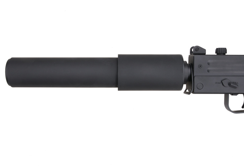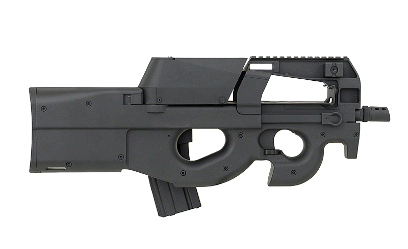 The P98 is a Personal Defense Weapon (aka PDW) which was created for close combat situations in 1990s. The cocking handle, magazine catch and fire selector were designed to be ambidextrous operated. It equipped with two mil-spec rails and top rail for mounting red dot sights or other rail attachments, and it has a build-in iron sight on the top rail for back up.