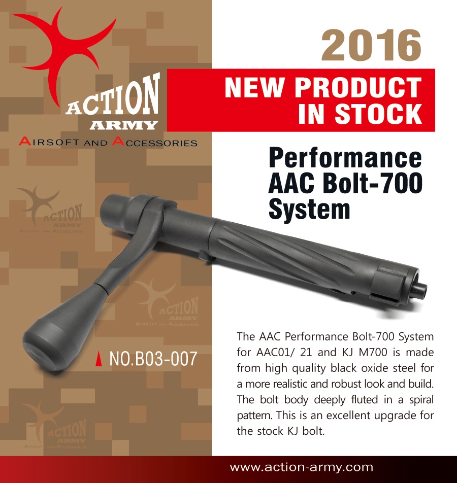The AAC Performance Bolt-700 System for the AAC01 / 21 and KJ M700 is made from high quality black oxide steel for a more realistic and robust look and build.