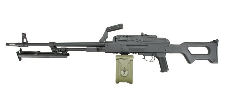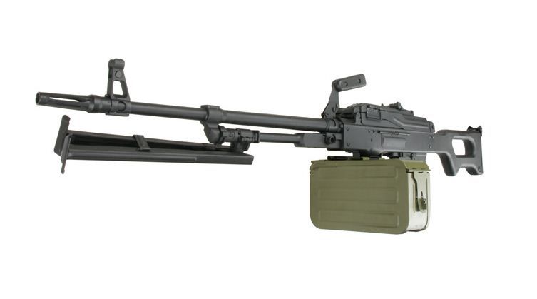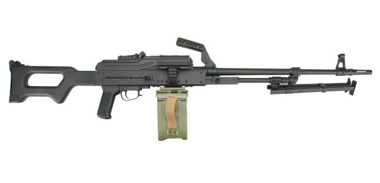 It is extremely rare to find Russian style machine guns in the Airsoft world, especially one as high quality as the PKM. This gun features a stamped steel receiver, full metal barrel assembly, and high quality polymer stock (like the real thing). This is by far the best reproduction of the PKM Machine Gun to date!