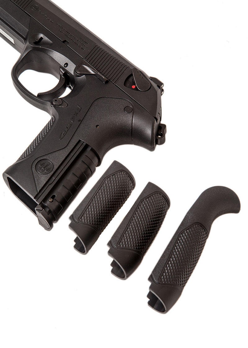 Include small, medium or large grip back-straps which can be configured and individually fit the hand of each shooter