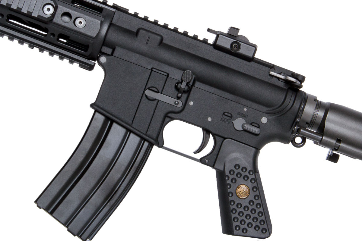 WE R5C AIR Gas Blow Back Rifle is a compact and light version of the M4 Raptor GBB Series. It comes with an aluminum made short type Raptor hand guard. Also, it comes with a silencer type outer barrel which makes the R5C GBB more tactical, and the 416 style sliding stock which makes the R5C much shorter and suitable for indoor and close ranger battle.