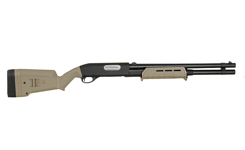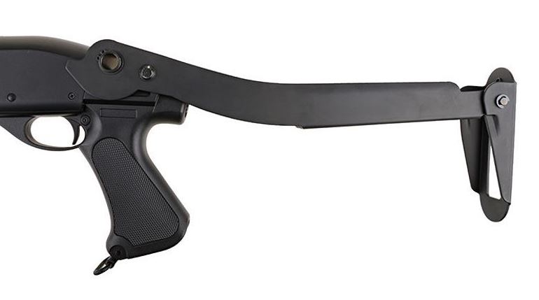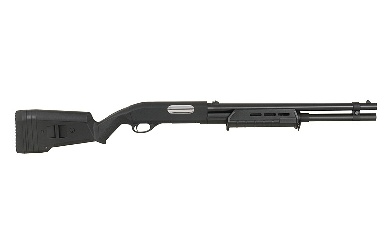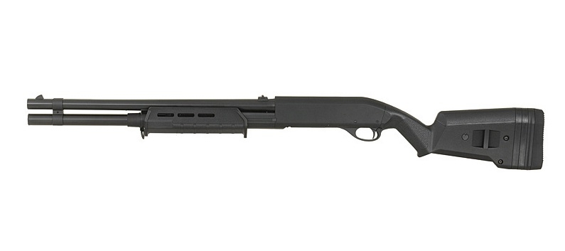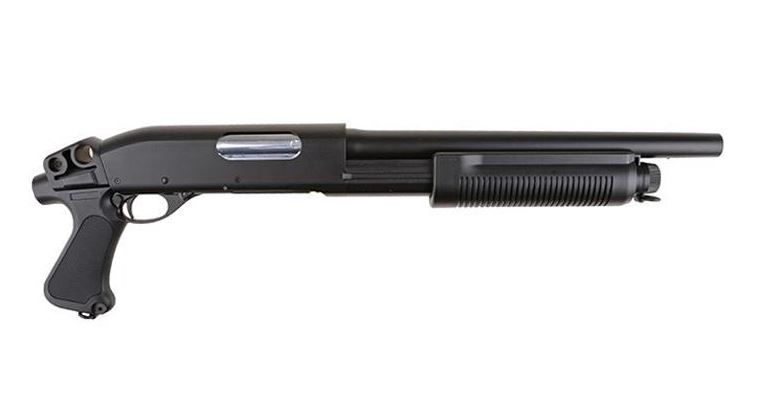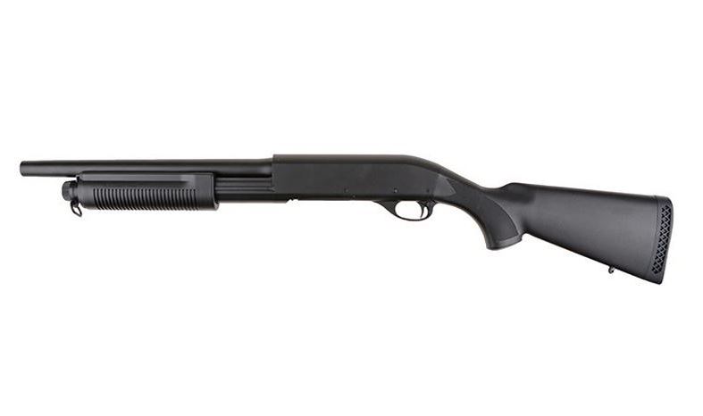 Shotgun series by Cyma has the same characteristic features as all other products from this brand. Those values include solid craftsmanship, good performance and reasonable price range. Spring action replica shotgun and, what’s important, has 3 inner barrels! This allows for firing 3 BBs at once, which directly results in greater advantage on the battlefield. Especially during CQB airsoft skirmishes. A 6mm BB is loaded into a shell replica of capacity up to 30 BBs, which is in turn placed in the chamber of the replica. All that gives the gun additional levels of realism.