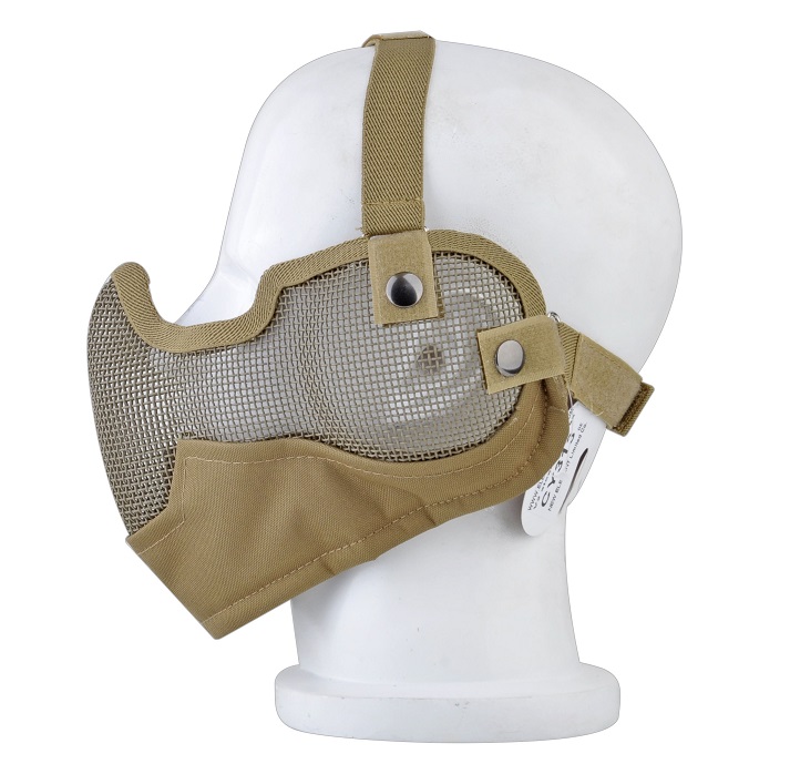 The Mesh Mask is a great mask for any player in any scenario. It is designed to provide protection for the lower half of your face while your goggles protect your eyes. The mask is made of a lightweight, extremely durable metal mesh that gives you ample ventilation to be able to breathe without fogging up your mask, while still protecting your teeth and skin from bb’s. The mask is secured by an elastic strap behind your head.