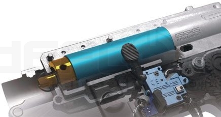 Inside the gun is a completely new and improved metal gearbox G2 with 8mm ball bearings, steel gears and M120 spring. Additionally equipped with electronics – a mosfet located in the stock tube and G2 ETU (Electronic trigger unit) in the gearbox. Internal trigger contacts with electronic microswitches.
