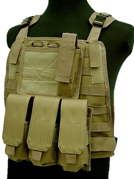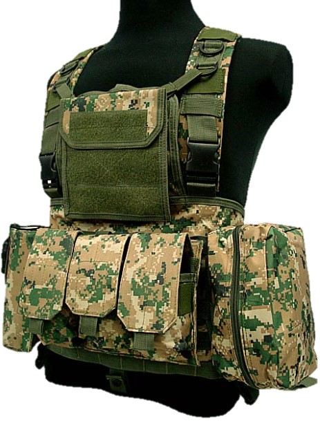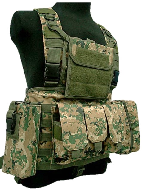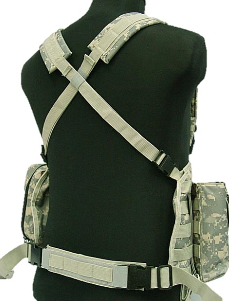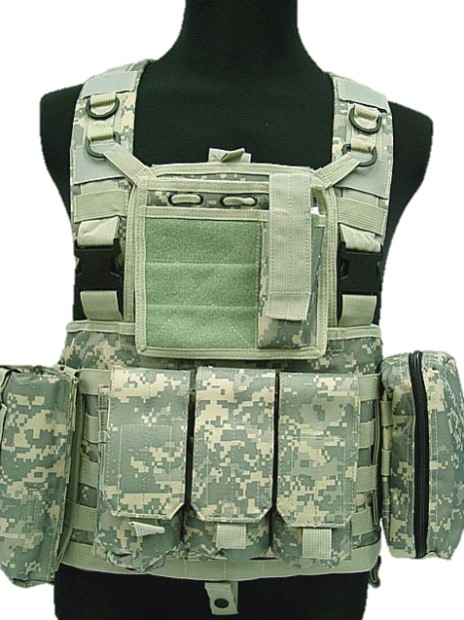 This Ultimate Assault Vest is a fully featured, highly adjustable vest with capacity of holding up to 12 M4/M16 or 8 G3/M14/G36 magazines in the front ammo pockets. Two large utility pockets on each side are useful for field utilities, water bottles and other similar items. All ammo and utility pockets go with adjustable quick release buckles and Velcro, hydration pocket has a Velcro opening while two large mesh pockets feature strong zip openings. The vest is of a three piece construction, comprising left, right and back panels, with adjustable strapping between the back panel and each of the side panels on the lower back at three points, and adjustable Velcro and webbing strap reinforcement over each shoulder. This allows the vest to be adjusted for height and width.