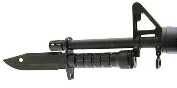 What's worse than being 'killed' in an airsoft game than being taken out by a spring pistol? You got it, the knife kill! This perfect replica US Army M9 bayonet is made from ABS plastic with metal fixings AND COMPLETELY SAFE RUBBER BLADE. It clips on to any M4/M16 variant and will not come off until you release it. The ABS sheath has numerous loops and clip fixings for attaching to your belt, webbing or tac-vest.