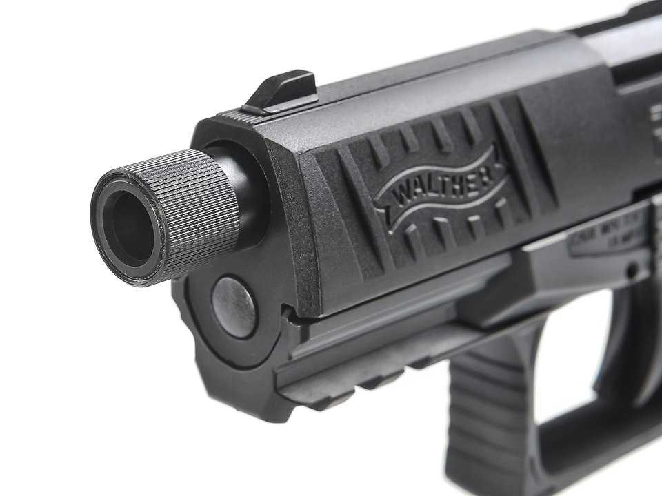 This Walther Special Operations PPQ airsoft pistol features metal barrel and parts with an integrated accessory rail.