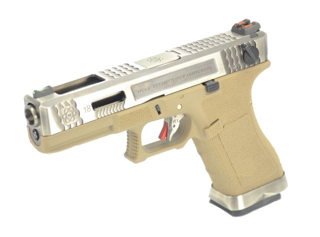 WE Force G18C GBB Tan (Silver Slide and Silver Barrel)