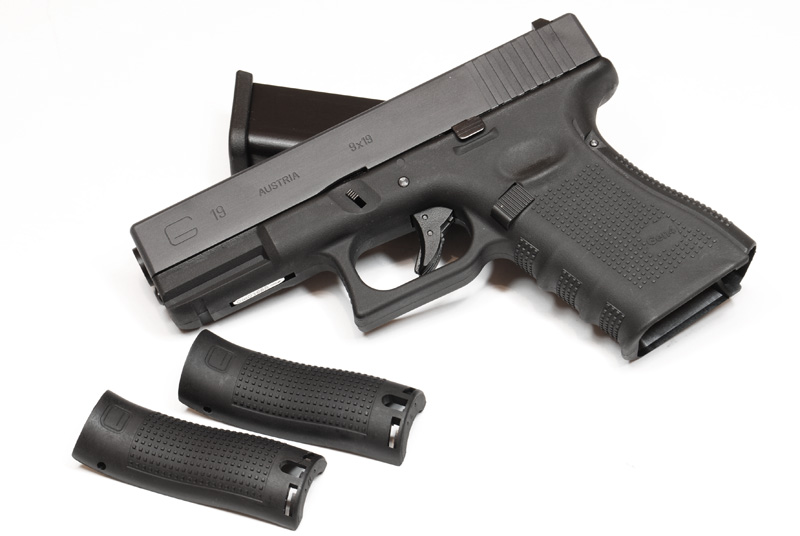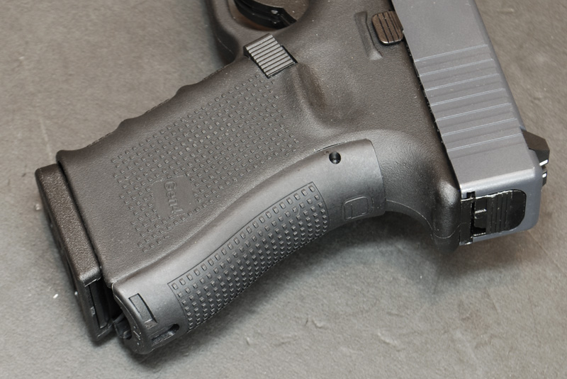 Special textured handgrip offer firm hold of pistol with gloves on.