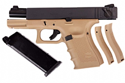 G23 is a compact version of the standard size G22 (using .40 S&W ammo) which fires the same round as G22. It comes with a smaller frame, a shorter barrel and slide, also can share the same mags that G22 used.