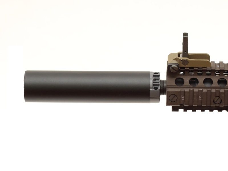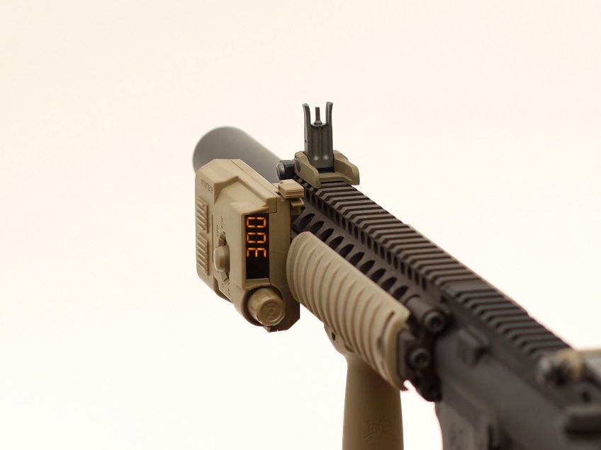 The silencer works in tandem with the command box and also acts as a tracer / chrono. It also lets you know the rate of fire of your AEG or GBBR. It fits on a 14mm CCW thread as the box itself can be placed on any 20mm rail mount. The top is preferred as it is easier to read.
