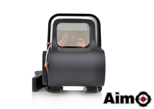 Red and green color Biohazard style aiming point with nineteen levels of brightness is displayed on the mirror. Aiming point can be adjusted vertically and horizontally.