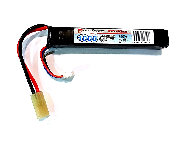 Li-Po Battery, 11.1V 1000mAh, 20C, Dimension: 19.5mm*16.5mm*107mm, weight approx. 66g. With Tm1 connector (Gold-Plated Plugs), and 120mm 16# Silicone Wires & 2.0mm JST-XH (3P) Balance Connector,