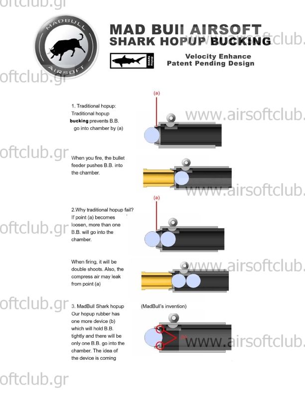 Δυστυχ?ς, δεν ξ?ρουμε ακριβ?ς το λ?γο, επειδ? κ?θε ?πλο airsoft ?χει τα δικ? του χαρακτηριστικ?. Παρ?λα αυτ?, πιστε?ουμε ?τι η εφαρμοζ?μενη στη βολ?δα ΒΒ τριβ? (απ? τα τρ?α πτερ?για) θα αυξ?σει την ταχ?τητα εξ?δου.