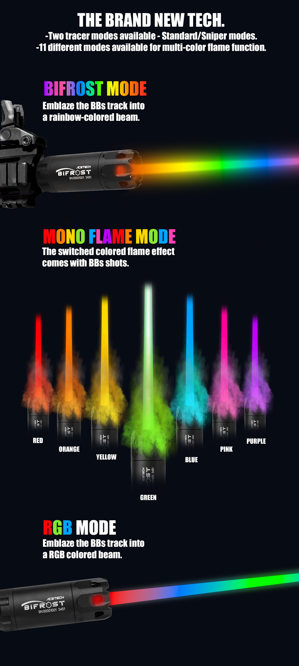 Two tracer modes available – standard / sniper modes