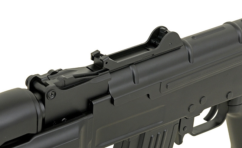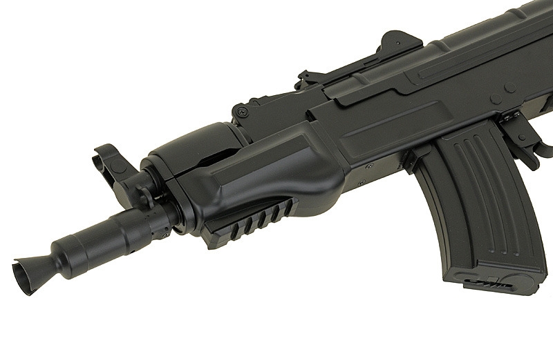 AK47 Tactical w/ Solid Stock, for this money this is an excellent Airsoft RIF. Although most of the externals are made from Polymer, the main components are alloy. We were surprised when we first shot this to feel how smooth the gun actually cycles. With a great power of 330fps straight out of the box, you really are set to go or have it as a backup for any other game day for when all else fails. Like most solid stock AK’s you have a considerable amount of space in the rear but we do recommend a space / aftermarket battery to compliment the one that comes with the gun as it is a cheap basic setup battery. The main usable points such as the sling points, outer barrel and all fitting screws and pins are alloy. A great AK to get into the sport or have as a go to back up item. You even have the option to fit a range of optics, torches and lasers up front on the 4x 20mm RIS / RAS rail sections. We are truly impressed with the performance of this straight out of the box.