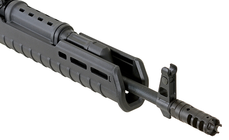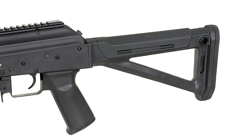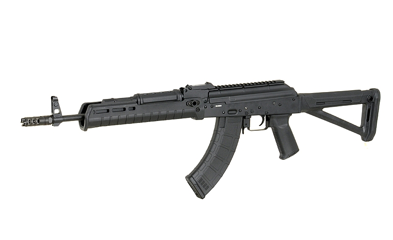 CYMA CM.077 Kulikov-T AK-47 Fixed Stock is a 6mm BB Airsoft Electric Gun, based on the AK-47, given a comprehensive overhaul creating a truly Dynamic gun. CYMA have taken the traditional AK-47 platform, and removed the shortcomings of the traditional gun, replacing the Stock, Handguard and Pistol Grip with Ergonomically Enhanced Designs. Featuring the Modular Polymer furniture kit, the CM.077 uses a fixed Polymer AK Stock for enhanced Ergonomics. The Lightweight fixed stock features QD Sling Mount Points on both sides, and a Rubberised, Shock Absorbing butt pad, which allows users greater Control and Grip on the weapon. This is combined with the Polymer Handguard, which replaces the AK-47s traditional handguard with a Lightweight, Comfortable MLOK compatible design. With MLOK attachment points on the Sides and Bottom of the Handguard, users can install a wide variety of Accessories and After Market Components to enhanced the practicality of their gun; from Foregrips to enhance their Control of the gun, to Lasers and Lights for use in Low Light Situations. The Top Cover has not escaped CYMAs upgrades, as it is now Hinged, improving users access to the battery compartment and making closing the Cover easier. The Top Cover also features a 16.7cm length 20mm RIS Rail for mounting a wide variety of Magnified or Reflex Optics, improving the users ability to Locate and Track targets while Airsofting. The Controls remain the same Tried and Tested AK design, the Fire Selector is the Downwards Sliding lever, realistically moving from Safe, to Fully Automatic and finally Semi Automatic, just like the real thing, and the Magazine Release in the classic Ambidextrous lever in front of the trigger guard. All in all, theres a lot to like about the CM.077 Kulikov-T. It takes an incredibly popular weapon platform, and gives it the overhaul it has desperately needed for many years; turning the AK-47 from a practical workhorse Airsoft gun into a modern and dynamic Airsoft gun, with com