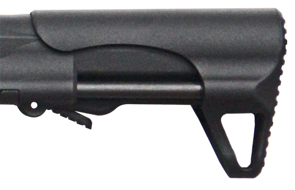 Ergonomic motor grip with enhanced trigger guard allows for easier use of the carbine with gloves