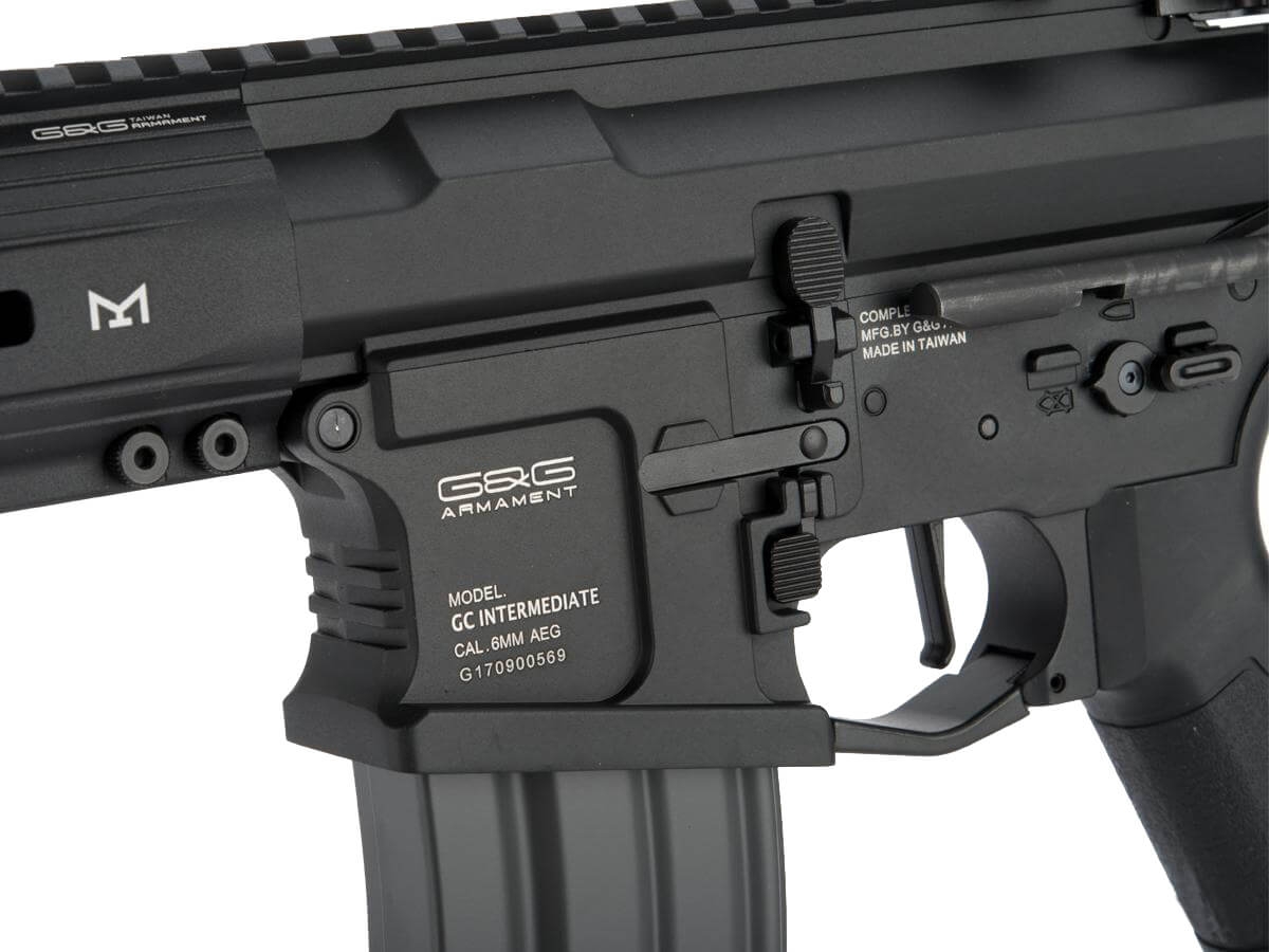 Durable carbine receiver with matte anodized finish and stamped G&G rollmarks, mimics the popular billet style of receiver