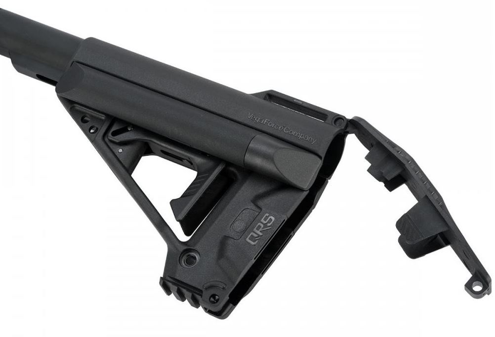 The subject of the stock requires more consideration, because in Avalon replicas a copyright, patented by VFC QRS (Quick Response System) stock was used. The QRS stock stores a battery, has tactical sling swivels and a comfortable stock pad as well as a short RIS 22 mm rail. No tools whatsoever are required in order to gain access to the inside of the stock in order to attach the battery. The stock was made from high quality, strong polymer and features a new type length adjustment lever.