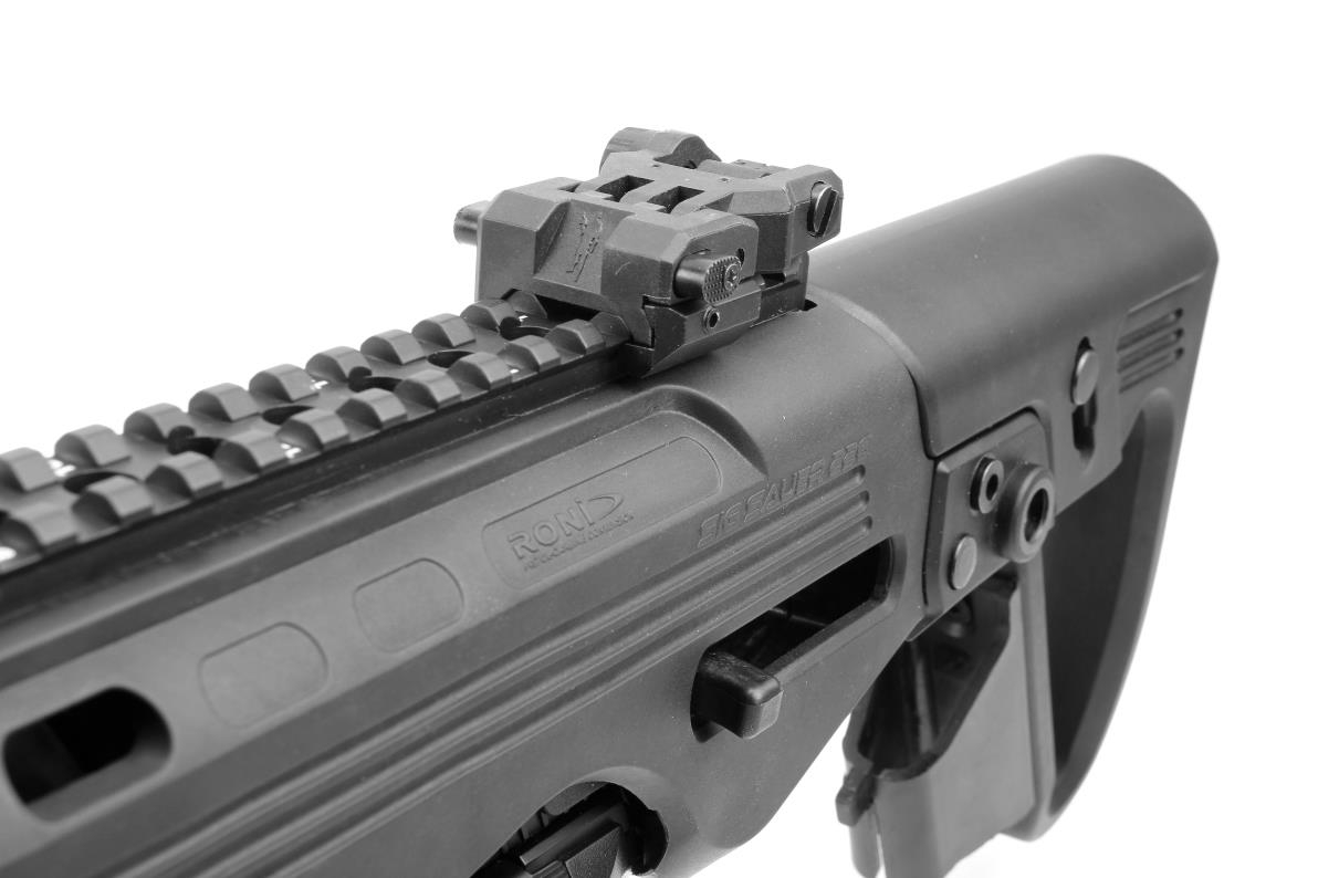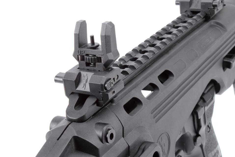Included Low Profile Flip-up Front and Rear Sights