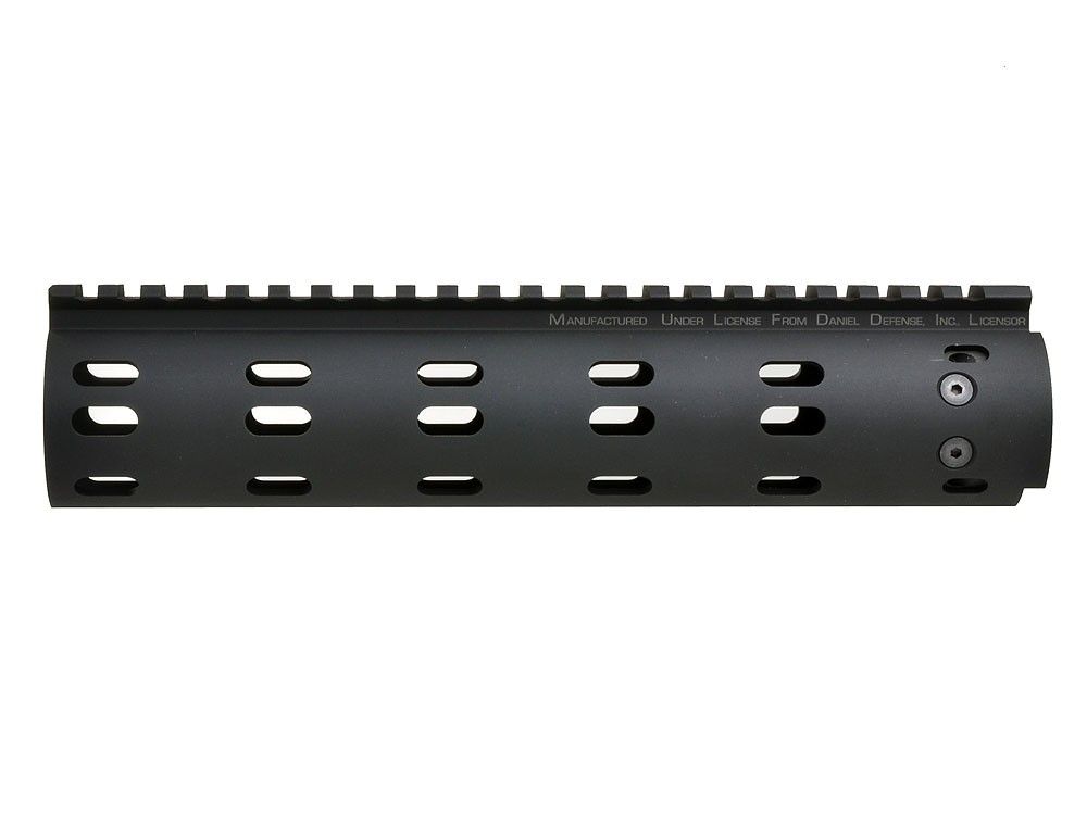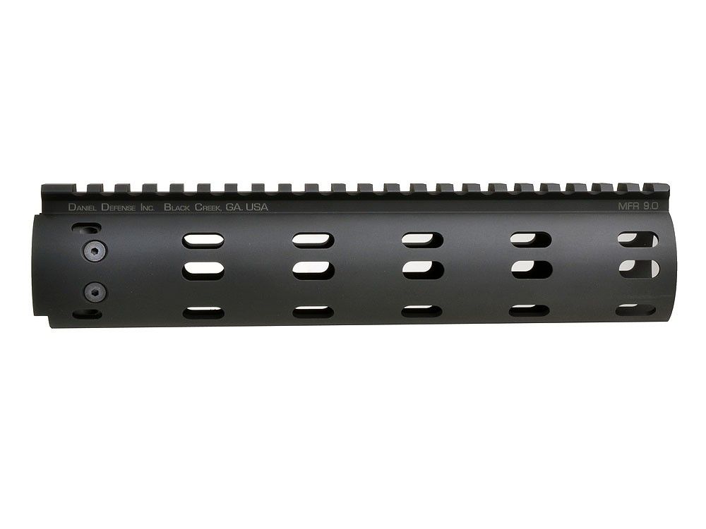 Description (Introduction of product) The Daniel Defense MFR(Modular Float Rail) is a CNC Machined Modular Free Float Handguard. It is specifically designed to adequately cover a low profile gas block on a carbine or mid-length gas system barrel. The MFR has been engineered to provide each shooter with the ultimate in modular adaptability. Should the shooter desire, the tube can be run “slick” with an unitterupted top rail that runs the length of the tube. In addition, the installation of Modular Picatinny Rails is accomplished with little effort. This allows you to have rails anywhere you need them and nowhere you don't. The slim profile feature of the MFR 12.0 keeps the shooter's support hand close to the bore which aids in firearm manipulation, and the design and construction allow for the attachment of Picatinny Rail Sections at standard 90 degree or offset angles.