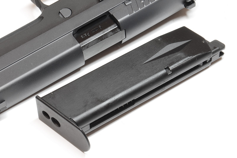 “P226 is the sidearm of U.S. Navy Seals Special Force. When it comes down to accuracy, dependability, ease of use, safety & longevity, P226 is on top of the list. Its exceptional ergonomics and balance make this high capacity full-size pistol easy to fire. Military & Law Enforcement Agencies around the world. A little known fact is that P226 is tested far superior to the Beretta 92F in trail tests by US Military. The 92F was chosen over the P226 for cost reason (and also Beretta’s willingness to open manufacturing factory in US sole). WE is proud to present the Airsoft version of SIG SAUER P226 with the every aspect of this famous Weapon. Plus it is a FULL METAL constructed pistol.”
