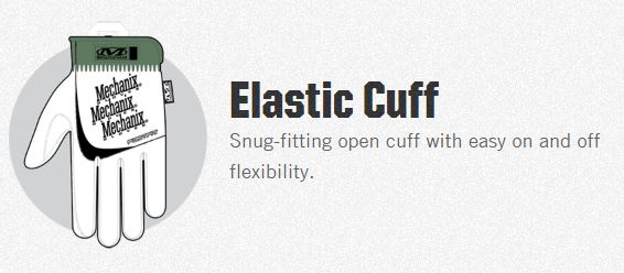 Elastic cuff provides a secure fit with easy on/off flexibility.