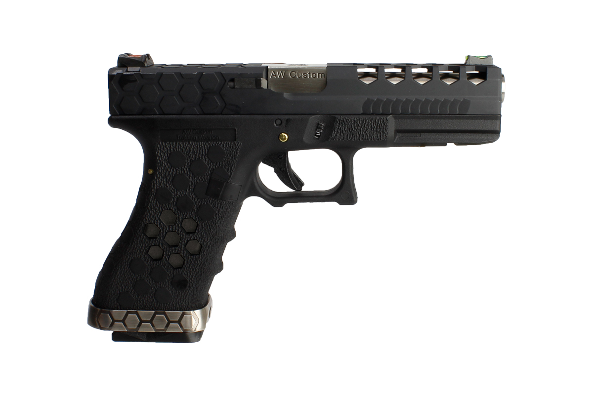 AW Custom is proud to announce the VX Series Hex Cut pistols, a brand new range of pistols featuring our signature hex cuts and hex porting to reduce overall weight of the pistol in addition to providing an aggressive gripping surface. Whether you’re putting this pistol through it’s paces at an IPSC/Action Air competition, or skirmishing it, this pistol will consistently outperform the competition, putting shots downrange accurately, and with blistering speed.