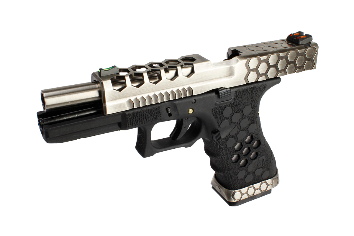 AW Custom is proud to announce the VX Series Hex Cut pistols, a brand new range of pistols featuring our signature hex cuts and hex porting to reduce overall weight of the pistol in addition to providing an aggressive gripping surface. Whether you’re putting this pistol through it’s paces at an IPSC/Action Air competition, or skirmishing it, this pistol will consistently outperform the competition, putting shots downrange accurately, and with blistering speed.