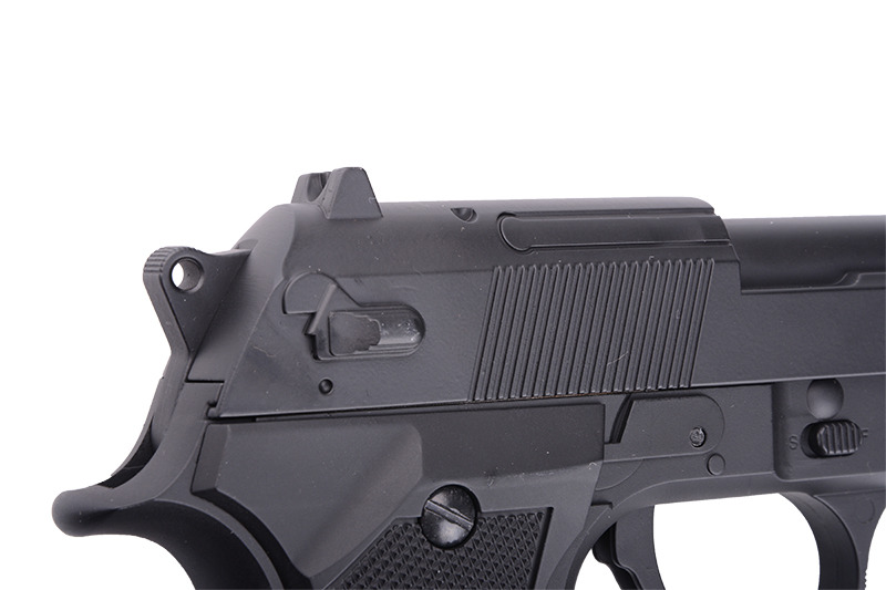Hop Up is adjustable dial-type and inner barrel is fixed to the mechanism. Slide is not recoiling as this is fixed slide pistol. Both semiautomatic and full automatic firing capabilities are included. 20mm rail enables attachment of tactical torches.